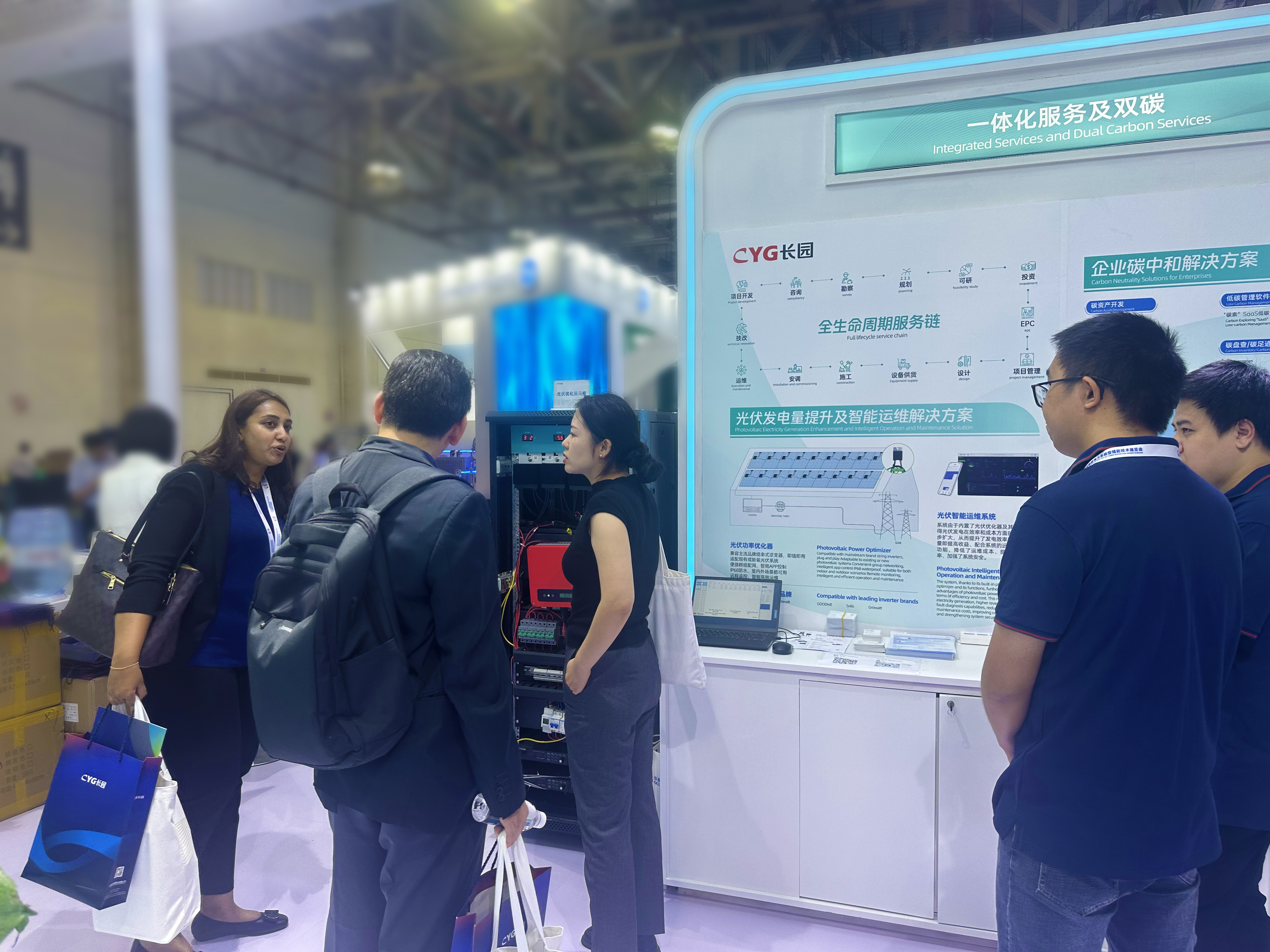 南宫ng28科技集团携旗下多家子公司亮相此次大会,围绕“源网荷储”展示新型电力系统的多种解决方案。一站式光伏系统解决方案、新型电力系统多场景解决方案、综合能源管理平台,围绕发电侧和输变电系统、智能配用电系统等领域的解决方案备受瞩目,虚拟电厂、光伏优化器等新兴行业技术展品吸引着众多与会嘉宾,凭借专业的产品技术,驻足南宫ng28展台参观的观众络绎不绝。